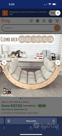 Questo arco da arrampicata Montessori è realizzato in legno di alta qualità ed è rifinito con grande cura. La lavorazione è solida, liscia al tatto e visivamente molto elegante. Un elemento sicuro e ben progettato, perfetto per accompagnare lo sviluppo motorio del bambino in modo naturale.