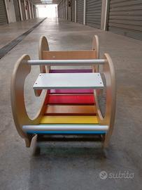 Arco da arrampicata, triangolo arcobaleno speciale per bambini, altalena per interni in legno, cavallo a dondolo per bambini dai 3 anni in su. Legno naturale con vernici adatte ai bambini.