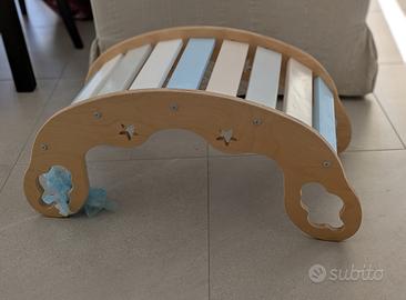Arco montessoriano per arrampicata che puo diventare dondolo. Compreso piccolo materassino come da foto. Ottime condizioni, segnalo soto piccola imperfezione alla base come da foto