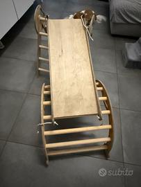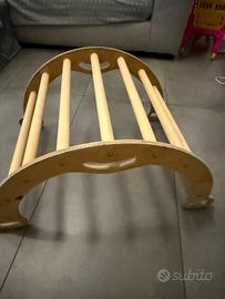 Arco dondolo Montessori con cuscino. Perfetto per arrampicata e per sviluppare coordinazione ed equilibrio. Acquistato su sito che vende materiali nordici di alta qualità in legno naturale. Cuscino in dotazione. Possibile consegna a mano nei dintorni
