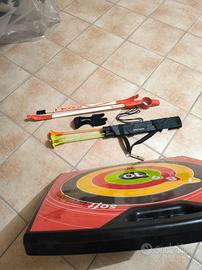 vendo kit arco con portafeccie , guantino compreso sia di frecce con punta morbida e freccia con punta ( non presenti in foto se siete interessati ) vendo anche i pezzi singolarmente , vendo tutto per inutilizzo é come nuovo