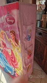 N° 2 Armadi principesse disney in stoffa e legno di pino misure 90x35x140 completi di stampelle principesse e minnie.