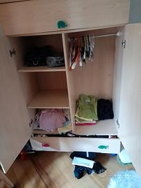 Armadio 2 ante, 1 cassetto, 1 scomparto superiore. Maniglie a forma di animaletto; suddivisione interna come da foto.