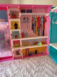 armadio richiuibile di barbie, tre scomparti più specchio all'interno,