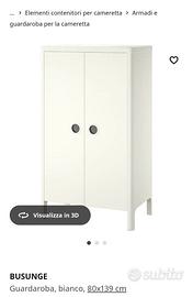 Vendo armadio Busunge Ikea in buonissime condizioni. Colore rosa. Ha spazio per scarpe, maglioni piegati e vestiti appesi. Sia il bastone appendiabiti che i ripiani possono essere spostati man mano che il bambino cresce.