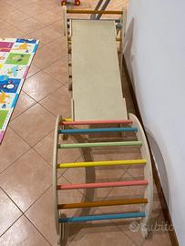 COSTWAY 4 in 1 Set da Arrampicata per Bambini, Giocattoli da Arrampicata a Triangolo con Triangolo Arco e Salita, Ideale per Bambini 1 Anni + (Macaron). Solo ritiro a mano.