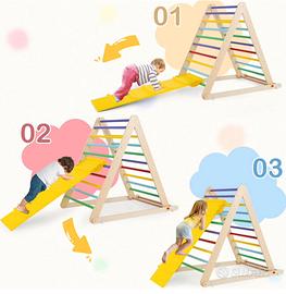 🎁【Scala Triangolare 2 in 1】Questa scala triangolare si può inclinare per arrampicarsi e scivolare. Rafforza le abilità motorie dei bambini e il controllo dell’equilibrio oltre a migliorare la fiducia in sé stessi. È il giocattolo perfetto per accompagnare il tuo bambino nella crescita!