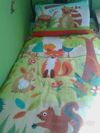 Vendo tende per due finestre 4 teli tema animali della foresta, un tappeto con gufi come nuovo 120x170 cm,sacco e federa più piumone,il sacco e stato lavato più volte lo regalo a chi acquista il tutto,le tende e il tappeto invece sono come nuovi. tutto 60 euro,il tappeto non lo specifico solo ritiro a mano a Castelletto d'Orba AL Ovada