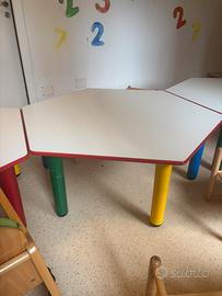 - 3 tavoli esagonali , casa Borgione, piedini colorati €90 l’uno
