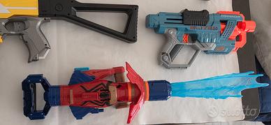 Arsenale Nerf composto da 4 fucili, 1 pistola Fortnite, 2 mitragliette, 1 Lancia colpi Marvel Spiderman, 2 giacche tattiche, 2 caricatori Plus e oltre 300 proiettili di tutte le misure.