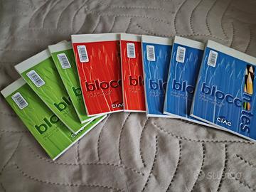 articoli (nuovi) di cartoleria: quaderni A4, copertine colorate per quaderni A4, colle, blocchi A4 e piccoli, forbici, compassi, squadre, goniometri, matite, nastri colorati...