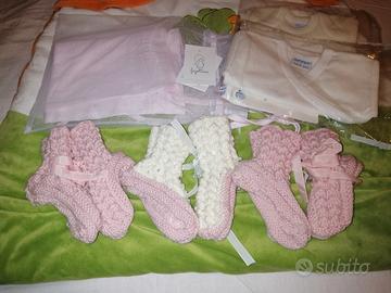 2 sacchi nanna... 2 magliettine della salute con cartellino. 2 sacchetti porta oggetti con cartellino marca Fagottino. 3 paia di calzini da notte fatti a mano mai usati. 3 lavette Chicco. Un asciugamano grande e uno piccolo 100 %cotone. Tutto a 10 euro