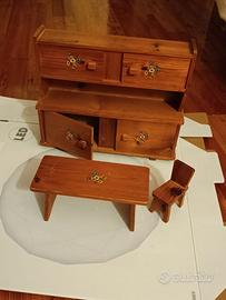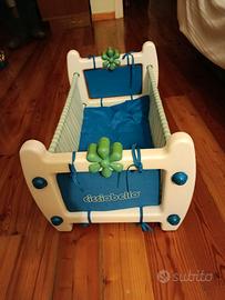 Vasca bagnetto okbaby, soggiorno in legno,lettino Cicciobello, seggiolino da tavolo inglesina