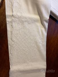 Vendo piccolo lotto di asciugamani in cotone e lino ricamati a mano. Misura larghezza 75 lunghezza 98. Vendo anche separatamente a 20 ? l'uno.nei messaggi specificare il numero da uno a cinque. In puro cotone o lino.ricamati a mano dalla nonna.
