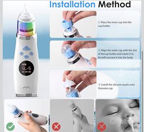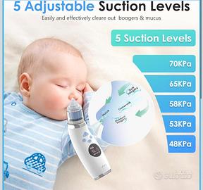 Aspiratore Nasale Elettrico, Aspiratore Nasale Neonato, Aspiratore Nasale Elettrico per Bambini, 5 Livelli Di Aspirazione & 3 Punte In Silicone Senza BPA, Luci Colorate & Musica. Nuovo mai usato ancora nello scatolo