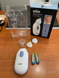 Aspiratore nasale usato bochissimo, completo di filtro nuovo mai usato, custodia dí trasporto mai usata, istruzioni e scatola originale.