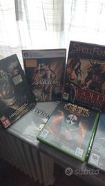 Giochi anni 2000-2010: - Resident Evil - Leisure Suit Larry - Fx Calcio (PC calcio) - Still Life - Medieval 2 - Dead Space - Tomb Rider anniversary - Star Wars tre Sith Lords (xbox 360) - Spell Forge (gold ediction) - Star Wars Knight Old Republic - Mass Effect Sarei per vendere l'intero pacchetto perchè devo sgomberare casa per trasloco.