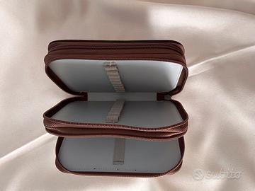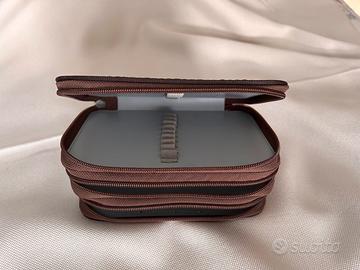 Astuccio compatto a 3 scomparti Colour Expression con elastici interni portamatite/portapennarelli . Cerniere scorrevoli, cuciture integre. Esterno in tessuto tecnico effetto canvas. Dimensioni cm 21 x 15 . In ottime condizioni usato pochissimo nessun difetto.