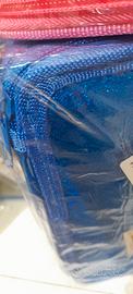 astuccio a 3 zip glitterato fucsia e blu