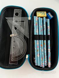 Disponibili: Astucci astronauta per bambini adatto anche ler scuola elementari compreso di set di matite, colori, gomma, temoerino e righelli.