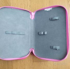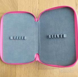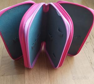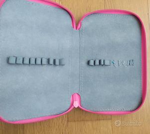 Vendo astuccio per penne e matite. Con tre scomparti separati con cerniera In ottime condizioni. Solo pochissimi elastici sono rotti (vedi foto).