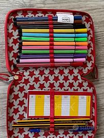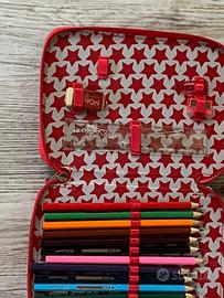 vendo astuccio a due piani fantasia disney minnie, completo di matite colorate, pennarelli, gomma, temperamatite e righello