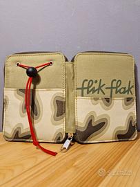 Astuccio Flik Flak camo piatto con block notes, matita e moschettone mai utilizzati.