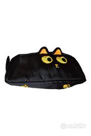 1 Astuccio 3D Gatto Nero Carino - Grande Capacità in Tela Resistente, Design Cartoon con Occhi Arancioni e Segni di Zampa, Ideale per Scuola, Ufficio o Cancelleria .
