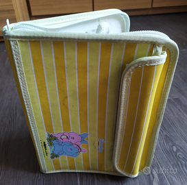 Astuccio portapenne/portamatite colorate con scomparto esterno comodo per mettere fogli o forbici o altro occorrente. 30 spazi all'interno di cui 27 per matite, 1 per gomma e altri due più ampi per penne o evidenziatori. Per bambine o bambini della scuola elementare. Datato ma tenuto bene.