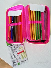 Vendo astuccio Quick case SJ girl per errato acquisto. Completo di penna frixion blu cancellabile, pastelli giotto supermina, colori giotto turbo color, ecc.