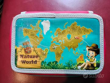 Astuccio scuola con 3 scomparti a zip in ottime condizioni! Usato pochissimo, interni perfetti, unica imperfezione sulla scritta esterna che ha alcuni segni di penna, come visibile in foto