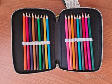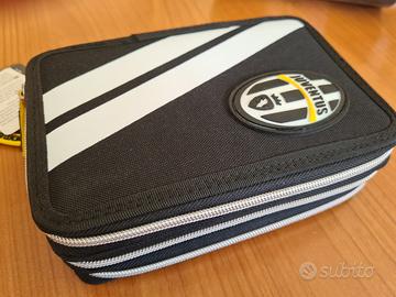 Astuccio scuola con triplo scomparto. Completo di penne, matite, pennarelli e accessori scuola (prodotto ufficiale Juventus)