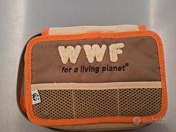 Astuccio scuola WWF, pulito e con elastici integri. 3 vani contenitore per matite colorate, pennarelli, biro/gomme ecc.