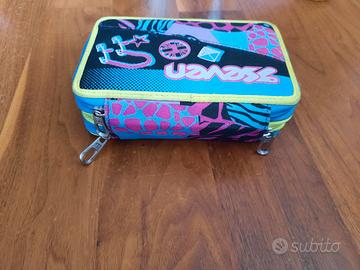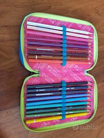 astuccio seven con 3 zip per bambina con set di 18 matite colorate e 18 pennarelli
