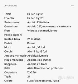 bellissima bici , modello ATALA BUNNY GIRL, ruote da 12. Adatta a bambini di 4, 5 anni , in ottime condizioni , usata poco. Nuova è ad € 150