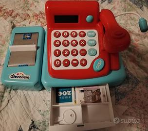 Vendo assieme a set alimenti in plastica, set utensili e registratore di cassa con tastiera funzionante.