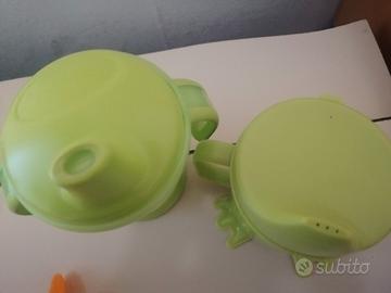 2 bicchieri in plastica con beccuccio 1 piattino con gomma antiscivolo 2 maniglie per impugnare i bicchieri