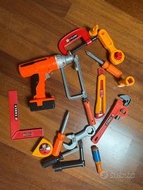 Kit con viti, bulloni, cacciavite, metro e altro per far giocare i piccoli sviluppando la loro manualità e creatività