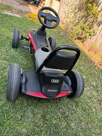 Bellissima macchina Audi per bambini a pedali, adatta per qualsiasi tipo di terreno: asfalto, terra, giardino, sabbia. Auto acquistata per mio figlio due anni fa presso un concessionario Audi di Roma al costo di 450 euro, utilizzata da mio figlio ma ancora in ottimo stato, la vendo perché mio figlio è cresciuto e non ci gioca più. La dimensione del pacco è superiore ai 2 kg e alla taglia grande per cui spese di spedizione sono da concordare, o se acquirente di Roma può ritirarla in loco