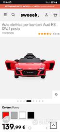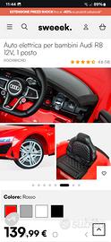 Audi rs8 sport , pari al nuovo, regalata a natale, perfetta per portare in giro il vostro bimbo . Chiavetta usb per le sue canzoni preferite , fari a LED, cinture di sicurezza , musichette predefinite , clacson , davvero stupenda. Valore di mercato oltre I 170€.
