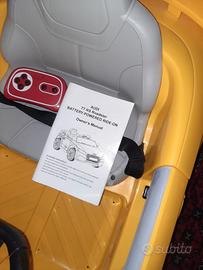 Macchina elettrica per bambini gialla Audi TT RS Roadster guidabile sia con telecomando che dal bambino con pedali e leve. Compreso il cavo di ricarica e il libretto delle istruzioni. Unico difetto manca lo sportellino che chiude le batterie ma le batterie restano incastrate senza problemi. Possibilità di mettere chiavetta USB per ascoltare la musica.