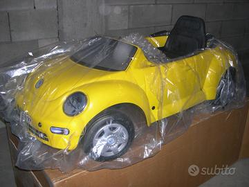 Auto a pedali VW New Beetle Yellow, replica della nuova versione del vecchio Maggiolone. E' un'auto molto allegra e anche adatta, date le ottime condizioni, anche per eventuale allestimento vetrine di vestiario per bambini, ecc.