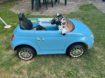Vendo auto elettrica Fiat 500 per bambini, motori posteriori a 12v, con telecomando, comandi al volante, possibilità di ascoltare la musica, buone condizioni, usata pochissimo