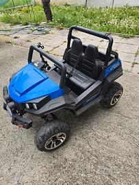 auto elettrica RSX 4x4 da 12 Volt che è una vera potenza del fuoristrada per i più piccoli. Non è il solito giocattolo leggero ma un veicolo costruito con materiali di qualità e una lavorazione curata che si nota subito nei dettagli. La trazione è integrale grazie ai quattro motori che azionano singolarmente tutte le ruote permettendo di affrontare tranquillamente anche i terreni un po' più difficili. All’interno i bambini viaggeranno nel lusso totale perché ci sono due sedili veri in similpelle con tanto di cuciture a vista e le cinture di sicurezza regolabili per stare sempre sereni. La guida è estremamente fluida grazie alle ruote in EVA morbida che offrono un comfort superiore e durano molto di più rispetto alle classiche ruote in plastica dura. Per i genitori la sicurezza è il punto forte infatti il telecomando da 2.4 Ghz permette di guidare la macchina a distanza se il bambino è ancora piccolo o se si avvicina a un potenziale pericolo. C'è anche la funzione di impostazione lenta per evitare scossoni ai principianti. Non manca ovviamente la tecnologia perché la plancia è tutta illuminata e dispone di un lettore musicale con Bluetooth per collegare lo smartphone oltre alla radio FM e alla tromba con effetti sonori e musica pop. È il regalo ideale per bambini dai 3 agli 8 anni e non richiede alcuna manutenzione particolare se non una pulita occasionale e la normale ricarica. Insieme alla macchina fornisco naturalmente il suo caricabatterie e il telecomando originale. L'auto è pronta per far diventare il vostro bambino il protagonista assoluto di ogni passeggiata. le batterie sono nuove