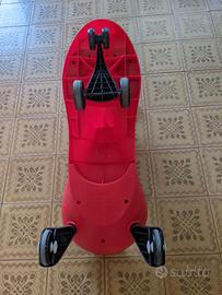 Niente elettricità, niente pile ricaricabili.. potete far scorrazzare i vostri bambini quando vorranno senza dovervi preoccupare che le pile si scarichino. E' stata creata per essere usata da chiunque con un eta' compresa tra i 3 anni e l'età di un adulto di corporatura media. Come si usa: Ci si siede sopra con entrambi i piedi sulla struttura e le mani sul volante. - Si gira il volante a destra e sinistra, cosi che le ruote si muovano e permettono il movimento sfruttando la gravità e la forza centrifuga. - Per fermarsi è sufficiente smettere di muovere il volante e poggiare i piedi a terra. - Per aumentare la velocità si gira il volante non solo con le braccia ma facendo lavorare tutto il corpo. La velocità massima di azione è di circa 8 km/h, ma suggeriamo una velocità non superiore ai 4-5 Km/h. La Coaster Car può essere usata sia all'interno che all'aperto. E' leggera e pratica e può essere riposta in qualsiasi automobile per portare i bambini a giocare nei parchi all'area aperta. Originale e robustissima. Comprata alla Citta' del sole.
