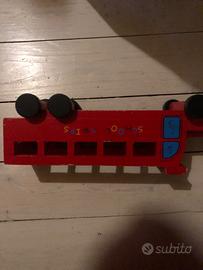 Autobus rosso in legno che si muove
