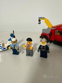 Autogrù in panne Lego City 60137 Autogrù (manca cassaforte con soldi) Due moto polizia Ladro Poliziotto Poliziotta Istruzioni originali - no scatola