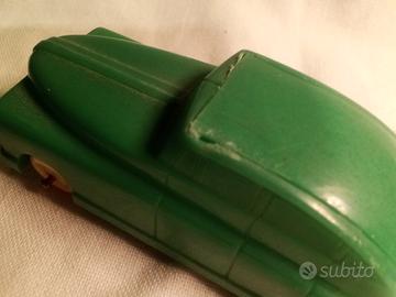 Automobile giocattolo degli anni 50 con funzione di temperamatite. L'oggetto è ben conservato ma presenta un difetto nel coperchietto-bauliera il gancio di sinistra è mancante