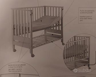 Lettino con base materasso regolabile in altezza su 3 posizioni.