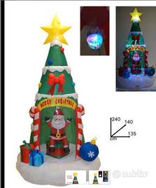 vendesi bellissimo gonfiabile con attacco alla corrente con Babbo Natale all'interno , compreso di luci con sfera a specchio .